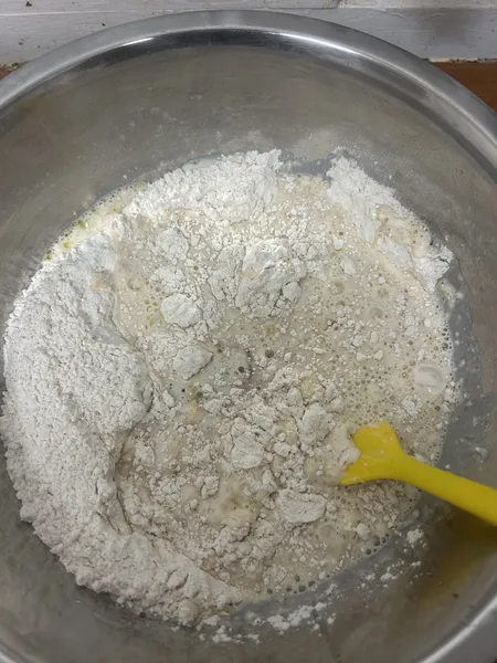 - Mix the Dry Goods: In your favourite mixing bowl, toss the flours, yeast, and salt. Give it a whisk until they’re all friends