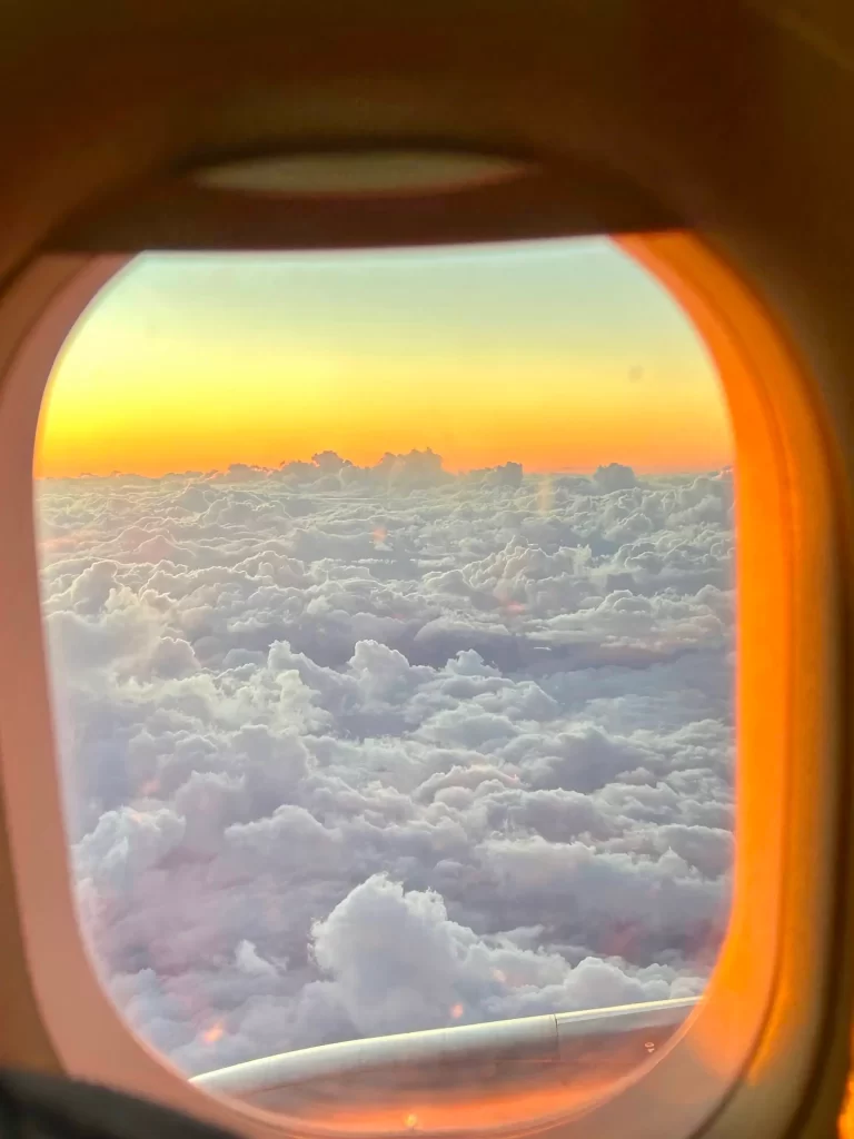 แน่นอนว่าไฟลท์มันต้องดีเลย์ แบบไม่ต้องแปลกใจ แปลกใจแค่ตอนไฟลท์ on time และสิ่งที่เราได้เห็นก็คืออออพระอาทิตย์ตกดินตกกระทบกับมวลก้อนเมฆที่อัดแน่นอยู่บนท้องฟ้า สวยมาก ประทับใจสุด และรู้เลยว่าทริปนี้ต้องดีมากแน่นอนเพราะ Tassie more than Welcome to have Picky in the heart island