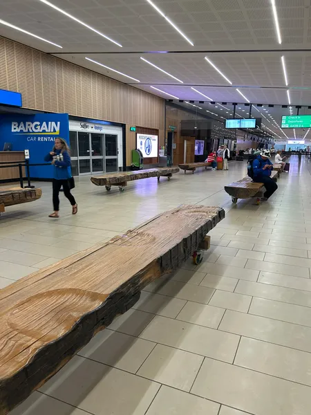 สนามบินเล็กจิ๋วน่ารัก มีหมามาดมของด้วย และที่ชอบสุดคือที่นั่งเป็นไม้ยาว ๆ เหมือนโซฟาไม้บ้านเรา 55555 รวมๆ แล้วอบอุ่น cozy